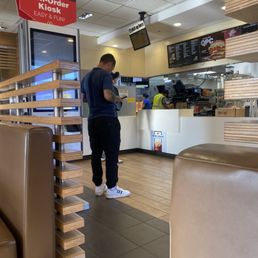 Friendly staff. Nice and clean restaurant. Ordering was easy on one of their self serve kiosks. Ordered to table however they didn’t deliver to my table. Picked up my order at the counter when it was called out. Reasonable wait time for food. Food tasted wine. I was their only customer as they for some reason locked their doors so nobody else could come in. Wi-Fi worked well.