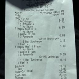 dry nuggets for my son’s school and not one sauce... not one. orders of large fries. Barely warm. I’ve done this three times now and every time there has been an issue. Your experience might be better if you speak Spanish though as communication could be a big part of my issue. There are also a lot of homeless around this location. McDonald’s is rarely a great experience, but this is never come back bad.